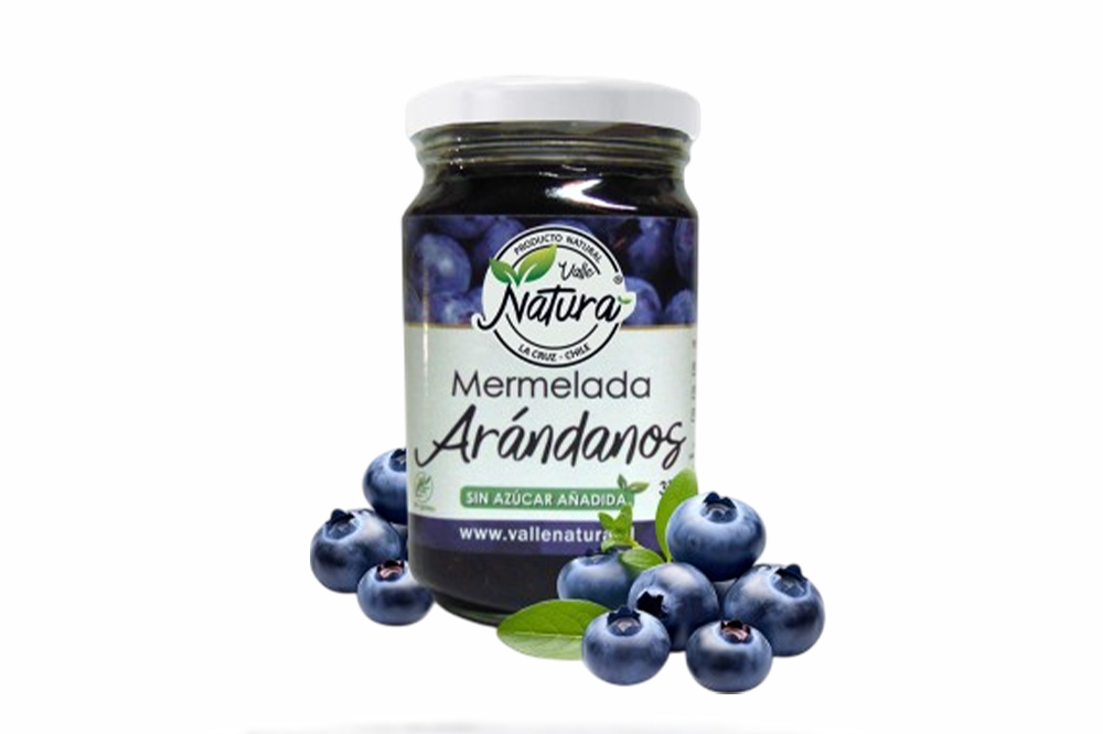 Mermelada de Arándanos (370 g) endulzada con jugo de fruta, sin azúcar añadida, sin aditivo, sin colorantes, sin preservantes, libre de sellos y sin gluten.